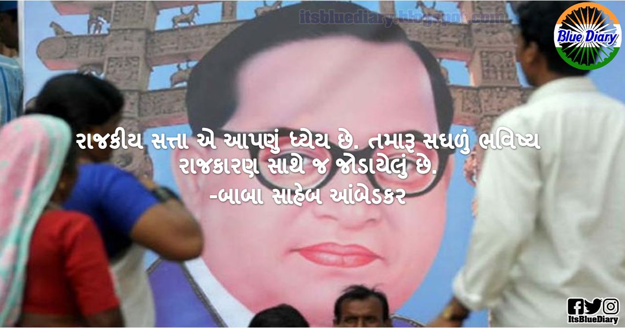 '' અસ્પૃશ્યોએ જો ખરેખર ઉન્નતિ સાધવી હશે તો તેનાં હાથમાં રાજકીય સત્તા જરૂરી છે. રાજકીય સત્તા એ આપણું ધ્યેય છે. તમારૂ સઘળું ભવિષ્ય રાજકારણ સાથે જ જોડાયેલું છે."